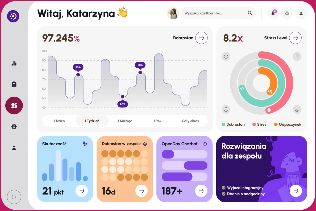 OpenDay daje narzędzia, które pomagają liderom podejmować lepsze decyzje oparte na danych o dobrostanie zespołu.